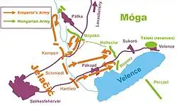 Le 28 septembre l'armée hongroise tient une cour martiale à Sukoró. Lors de ce conseil, Móga affirme que l'armée hongroise combattrait si Jelačić l'attaquait. Cela se produit le lendemain matin.