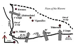 - 12e Corps d'Armée pour l'attaque face au nord entre Saint-Mihiel et Pont-à-Mousson en direction de Thiaucourt[1].