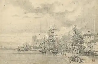 - ↑ Sur les 18 000 hommes de la flotte, un dixième environ étaient originaires de 25 nations différentes ; le carnet d'équipage nomme trois Français.