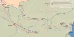 - ↑ D'après George Dodd, Pictorial History of the Russian War 1854-56, W. & R. Chambers, p. 51–55 ; W.E.D. Allen et Paul Muratoff, Caucasian Battlefields, Cambridge University Press, , 690 p. (ISBN 1-108-01335-X), p. 69–71. Cités par (en) Mesut Uyar et Edward J. Erickson, A military history of the Ottomans : from Osman to Atatürk, Santa Barbara (Calif.), Praeger Security Int. (ABC-CLIO, LLC), , 379 p. (ISBN 978-0-275-98876-0, lire en ligne), p. 28-30