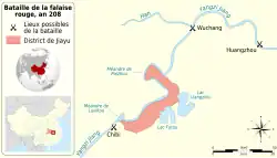 | Lieu | Sur les bords du fleuve Yangtsé, en Chine. La localisation précise est débattue. Site traditionnel marqué Chi Bi (Falaise rouge), sur la rive sud. |