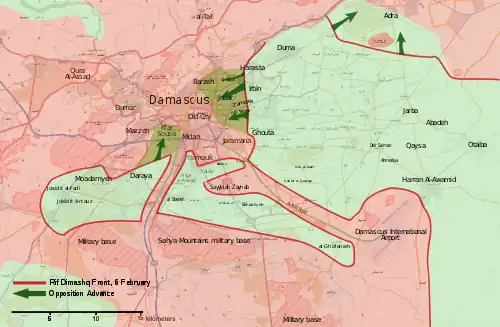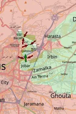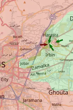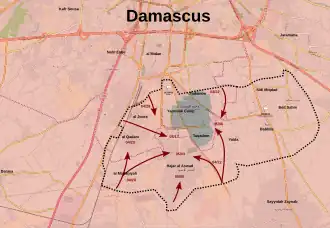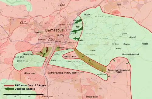 - ↑ Syrie: l'armée accélère sa reconquête de la région de Damas RFI, 20 avril 2018.