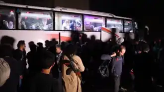 - 1 2 In conjunction with the arrival of Hayyaat Tahrir Al-Sham’s buses to al-Eiss crossing south of Aleppo, about 40 of Ishtabraq abductees and ill persons get out of Fu’ah and Kafriya, OSDH, 1er mai 2018.
