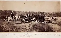 Ces dispositions prises, les troupes se remettent en marche à l'allure la plus vive et, à environ 2 h de l'après-midi, les troupes belgo-mexicaines couronnent le Cerro (colline) à l'est de la ville, apercevant toute l'armée d'Arteaga, rangée en bon ordre sur les trois mamelons de la Loma. Le mamelon du centre est occupé par une infanterie nombreuse suivant les deux branches d'un angle saillant très obtus, et précédée de six bouches à feu mises en batterie, de manière à battre les rampes escarpées de la position. Un bataillon, spécialement désigné pour servir de soutien à cette artillerie, se trouve en colonne entre le mamelon du centre et celui qu'occupe l'aile droite de l'ennemi[3]. Cette aile droite est formée par un bataillon d'infanterie en bataille, appuyée d'une forte colonne de cavalerie, composée en majeure partie du régiment des grenadiers à cheval, des lanciers de Jalisco et d'une colonne mixte formée par environ 800 hommes. L'aile gauche qui couronne le mamelon dominant la route de Chupio se compose de la réserve et du bataillon des chasseurs du Michoacán. Toutes les forces ennemies s'élèvent à près de 3 000 hommes[4].
