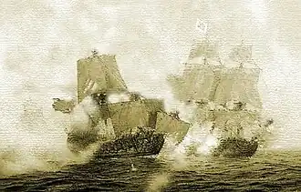 Le combat du Santa María pendant la première bataille du cap Saint-Vincent de 1780. Œuvre anonyme du XIXe siècle.