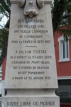 - Rue Curtat, nommée ainsi en hommage au chasseur du Mont-Blanc Victor Curtat, qui a pris le drapeau du 8ème Royal de Prusse le 23 janvier 1871[11].