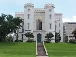 Alors qu'elle ne compte que 2 269 habitants[26], Baton Rouge supplante La Nouvelle-Orléans en tant que capitale de l'État de Louisiane en 1846, à l'instigation des députés anglophones protestants, hostiles aux francophones catholiques[27] mais le transfert n'interviendra qu'en 1849, une fois le capitole édifié[29]. Ce bâtiment de style néogothique abrite aujourd'hui le musée de l'histoire politique de la Louisiane[30]. La Législature s'y réunit pour la première fois le [24].