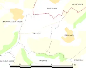 - ↑ « Orthodromie entre Battexey et Mirecourt », sur fr.distance.to (consulté le ).