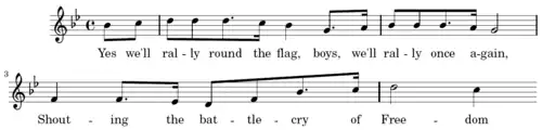 Yes we'll rally round the flag, boys, we'll rally once again,