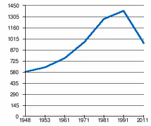 - 1 2 (sq) « Évolution de la population 1948-2011 », sur pop-stat.mashke.org (consulté le ).