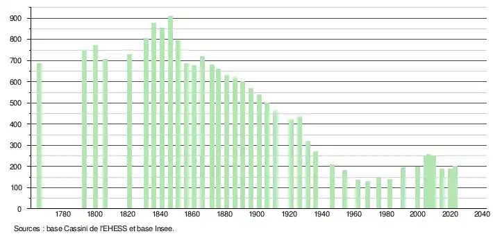 - ↑ Fiches Insee - Populations de référence de la commune pour les années 2006, 2007, 2008, 2009, 2010, 2011, 2012, 2013, 2014, 2015, 2016, 2017, 2018, 2019, 2020, 2021 et 2022.