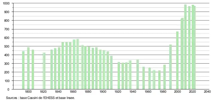 - ↑ Fiches Insee - Populations de référence de la commune pour les années 2006, 2007, 2008, 2009, 2010, 2011, 2012, 2013, 2014, 2015, 2016, 2017, 2018, 2019, 2020, 2021 et 2022.