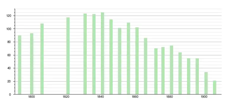 Beaudument connaît au XIXe siècle une période d’« étale » où la population reste relativement stable à un niveau élevé, à peu près contemporaine de celle de Sourribes : de 1806 à 1856. L’exode rural provoque ensuite le même mouvement de recul démographique qu’à Sourribes, mais il est sensiblement plus rapide à Beaudument : dès 1891, la commune a perdu plus de la moitié de sa population par rapport au maximum historique de 1841[12]. Le mouvement de baisse réduisant trop fortement la taille de la communauté, Beaudument est rattachée à Sourribes en 1909.