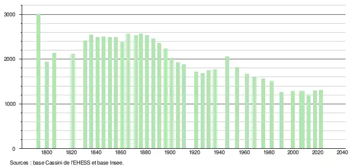 - ↑ Fiches Insee - Populations de référence de la commune pour les années 2006, 2007, 2008, 2009, 2010, 2011, 2012, 2013, 2014, 2015, 2016, 2017, 2018, 2019, 2020, 2021 et 2022.