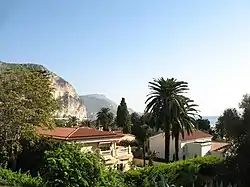 Collines environnantes : Mont Leuze, Mont Leuza, Plateau St-Michel, Plateau de la Justice, parc départemental de la Grande Corniche, Mont Alban, et Mont Boron sur la commune de Villefranche-sur-Mer.