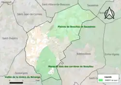 - ↑ « ZNIEFF les « plaines de Beaulieu et Saussines » - fiche descriptive », sur le site de l'inventaire national du patrimoine naturel (consulté le ).