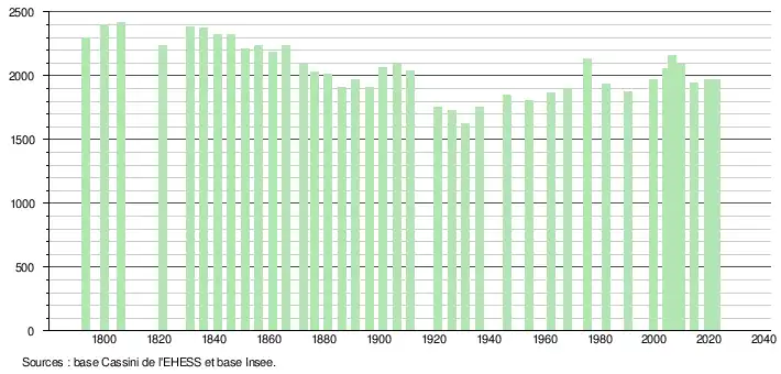 - ↑ Fiches Insee - Populations de référence de la commune pour les années 2006, 2007, 2008, 2009, 2010, 2011, 2012, 2013, 2014, 2015, 2016, 2017, 2018, 2019, 2020, 2021 et 2022.