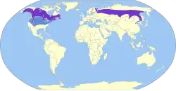 Toute la ceinture de l’Eurasie septentrionale, de l’est de la Scandinavie à la Mandchourie. Migrateur ou irruptif au sud de cette aire. Quelques observations hivernales à Tsintchéou, au nord-est de Pékin. Sud de l’Alaska, Montagnes Rocheuses au Canada et dans le nord-ouest des États-Unis se prolongeant en une bande dans le centre du Canada puis dans la région des Grands Lacs se terminant, à l’est, dans le sud du Canada et le nord des États-Unis. Hiverne largement au sud de cette aire.