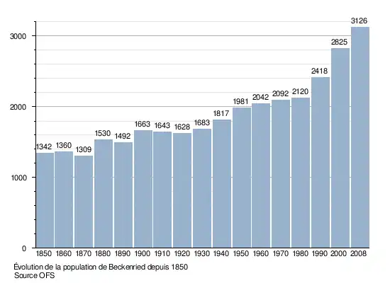 Le graphique suivant résume l'évolution de la population de Beckenried entre 1850 et 2008[3] :
