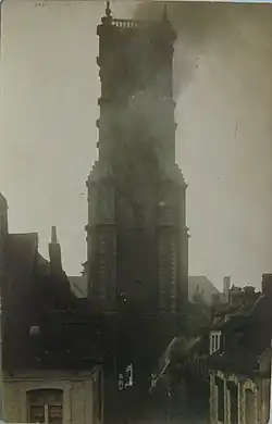Le beffroi d'Aire sur la Lys a connu deux incendies dans son histoire un premier en 1872 puis un deuxième en 1914.