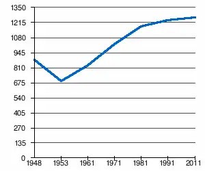- 1 2 (sq) « Évolution de la population 1948-2011 », sur pop-stat.mashke.org (consulté le ).