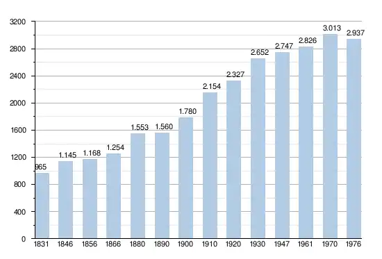 - Source: DGS , de 1831 à 1981=recensements population; à partir de 1990 = nombre d'habitants chaque 1 janvier[3]