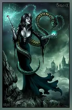 Bellatrix Lestrange est un personnage fictif de la série de livres Harry Potter écrite par J. K. Rowling. Elle devient un antagoniste majeur à partir de Harry Potter et l'Ordre du Phénix.