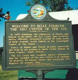 En 1959, le United States Coast and Geodetic Survey localisa de façon officielle le Centre géographique des États-Unis à 30 km au nord de La Fourche[2]. L'admission de Hawaï et de l'Alaska comme nouveaux 49e et 50e États des États-Unis cette année-là modifia en effet ce centre vers l'est. Lebanon dans le Kansas reste lui le centre des États-Unis continentaux.