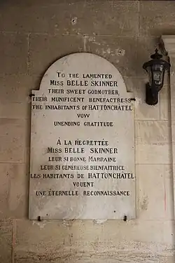 Belle Skinner fut la présidente de l’American Committee of Villages Libérés, une association de riches Américains participant financièrement à l'effort de reconstruction de villages dévastés par la guerre dans l'Est de la France.