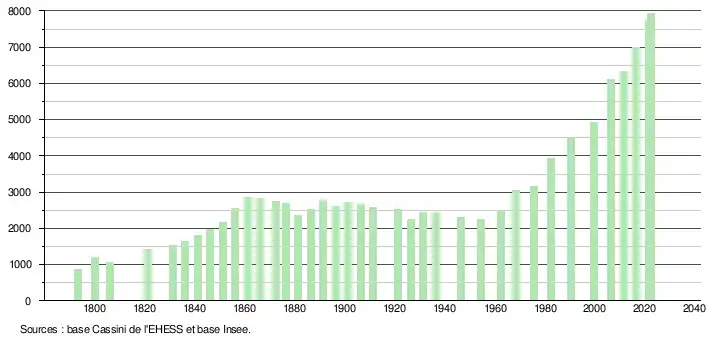 - ↑ Population municipale de référence en vigueur au 1er janvier 2025, millésimée 2022, définie dans les limites territoriales en vigueur au 1er janvier 2024, date de référence statistique : 1er janvier 2022.