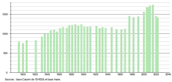 - ↑ Fiches Insee - Populations de référence de la commune pour les années 2006, 2007, 2008, 2009, 2010, 2011, 2012, 2013, 2014, 2015, 2016, 2017, 2018, 2019, 2020, 2021 et 2022.
