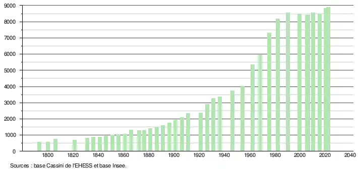 - ↑ Fiches Insee - Populations de référence de la commune pour les années 2006, 2007, 2008, 2009, 2010, 2011, 2012, 2013, 2014, 2015, 2016, 2017, 2018, 2019, 2020, 2021 et 2022.