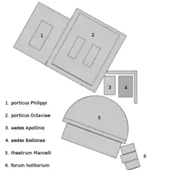 Tout comme le temple de Mars et pour les mêmes raisons, son temple à Rome est en dehors du pomerium, la limite sacrée qui sépare la ville (urbs) de son territoire alentour (ager)[1].