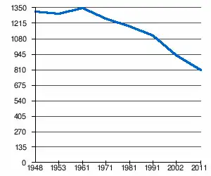 - 1 2 (sr + en) « Livre 20 : Vue d'ensemble comparative de la population en 1948, 1953, 1961, 1971, 1981, 1991, 2002 et 2011, données par localités) » [PDF], pages du recensement de 2011 en Serbie - Institut de statistique de la république de Serbie, (consulté le )