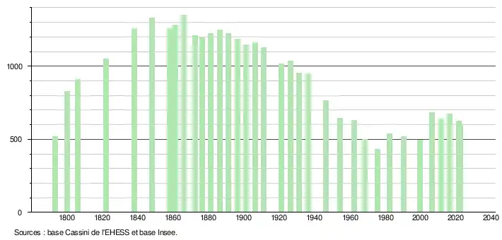 - ↑ Fiches Insee - Populations de référence de la commune pour les années 2006, 2007, 2008, 2009, 2010, 2011, 2012, 2013, 2014, 2015, 2016, 2017, 2018, 2019, 2020, 2021 et 2022.