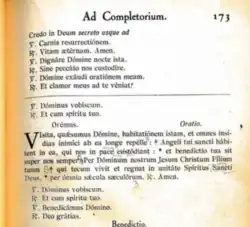Selon le dictionnaire de la musique, la formule Benedicámus Dómino (associée au Deo gratias) est « souvent employée comme clausule, d'abord pour clôturer les heures canoniques, puis transportée à la fin de la messe en alternance avec Ite missa est, qu'elle remplace en diverses circonstances. »[1].