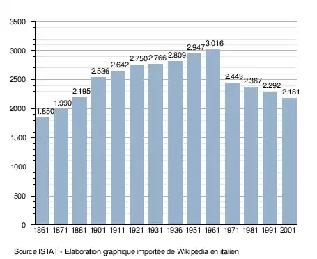 - ↑ (it) Popolazione residente e bilancio demografico sur le site de l'ISTAT.
