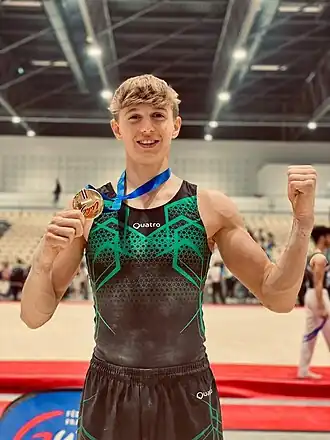 Il a participé aux championnats d'Europe en 2018 (junior), 2022 et 2023, aux championnats du monde en 2022 et 2023 ainsi qu'à de nombreuses coupes de mondes tel que celle de Paris en 2022 et 2023 où il décroche respectivement le bronze et l'argent au sol ou encore celle de Varna[2]où il décroche l'or au sol.