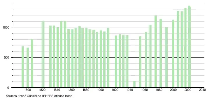 - ↑ Fiches Insee - Populations de référence de la commune pour les années 2006, 2007, 2008, 2009, 2010, 2011, 2012, 2013, 2014, 2015, 2016, 2017, 2018, 2019, 2020, 2021 et 2022.