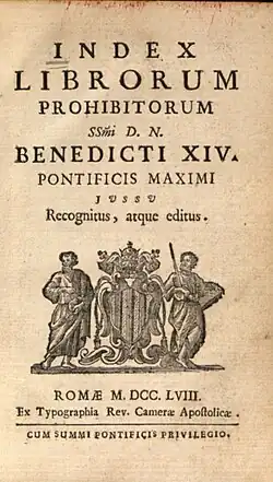 Bien qu'il soit devenu évêque de Rome[N 1], il occupe le poste d'archevêque de Bologne jusqu'au , date à laquelle il nomme Vincenzo Malvezzi Bonfioli comme son successeur[65]. Le lien avec Bologne est important ; Benoît XIV fait de nombreux dons d'ouvrages d'art ou de recherche à diverses institutions culturelles et ecclésiales de la ville. Il place en particulier l'Institut des Sciences de Bologne sous sa protection, à tel point qu'il fait don à la bibliothèque de l'Institut (aujourd'hui bibliothèque universitaire de Bologne) de la collection de 25 000 livres qui constituent sa bibliothèque personnelle et les fonds d'archives avec les documents de toute sa vie, soit plus de 500 volumes[66],[67].