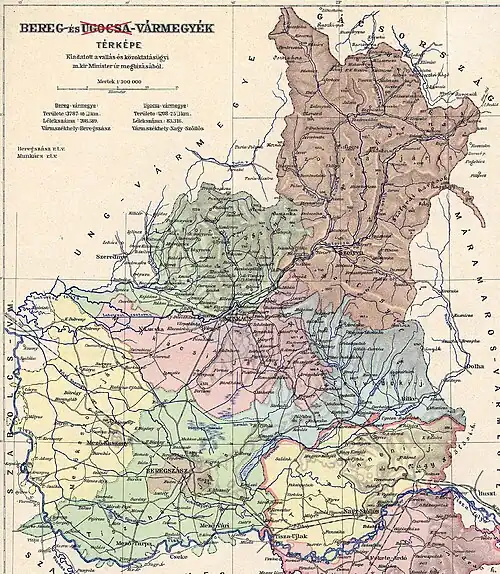 Au début du XXe siècle, le comitat de Bereg comporte les subdivisions suivantes :