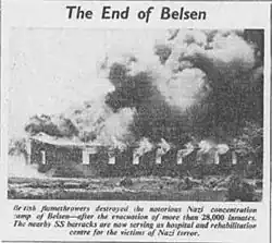 Le camp est libéré par les troupes britanniques et canadiennes le . La mortalité reste toutefois élevée en raison d'une épidémie de typhus que les Britanniques ne peuvent circonscrire rapidement faute de moyens et faute d'avoir perçu immédiatement l'ampleur du problème. Le camp est finalement mis en quarantaine et, le , les autorités britanniques donnent l'ordre de brûler les derniers baraquements. Les cadavres sont ensevelis dans des fosses communes.