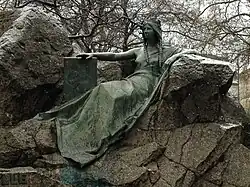 - statue assise, au pied du globe terrestre représentant l'Union postale universelle, dont Berne est l'hôte ; œuvre de René de Saint-Marceaux[2] (1909).
