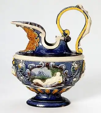 - Bassin « rustique » orné d'un médaillon représentant Diane et Callisto et Proserpine et Pluton. Atelier de Bernard Palissy (1560 env.).