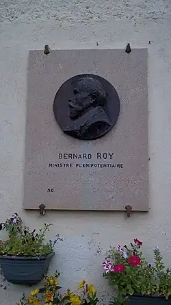 - ↑ Gabriel Puaux, Inauguration du médaillon de bronze sur la maison natale de Bernard Roy le 22 juillet 1928, éd. Imprimerie E. Paillet, Paris, 1929, p. 1-3.