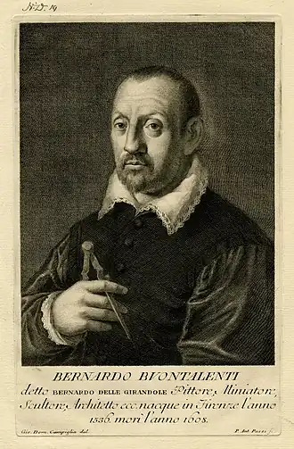 Bernardo Buontalenti, de son vrai nom Bernardo Timante Buonacorsi[1] (Florence, 15 décembre 1531 - 6 juin 1608, Florence), est un architecte, sculpteur, ingénieur militaire, scénographe et peintre italien de la Renaissance, considéré comme l'un des plus grands artistes de la Toscane, avec une longue activité à la cour grand-ducale de Florence. Il est l’un des artistes les plus importants et influents de la seconde moitié du XVIe siècle et un personnage clé de l’époque du maniérisme florentin, fortement lié à la personnalité de Michel-Ange et en général à la Renaissance toscane[2].