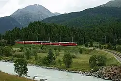 Ce train circule sur une voie métrique entièrement en adhérence sur le réseau du Chemin de fer rhétique, en passant par la vallée et le tunnel de l'Albula, puis par le col de la Bernina (2 253 mètres d'altitude) offrant des panoramas exceptionnels sur la chaîne de la Bernina, plus haut sommet de 4 000 m des Alpes orientales.