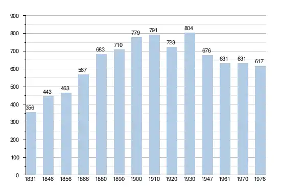 - Sources : INS, Rem. : 1831 jusqu'en 1970 = recensements, 1976 = nombre d'habitants au 31 décembre.