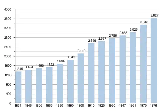 - Source: DGS , de 1831 à 1981=recensements population; à partir de 1990 = nombre d'habitants chaque 1 janvier[3]