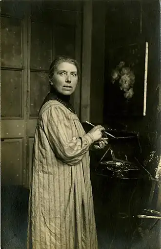 Durant la Première Guerre mondiale, elle s'engage et intègre le personnel de l'hôpital auxiliaire de l'école Fenelon. Tout au long de sa vie, elle a participé à des œuvres de bienfaisance, au profit de l'hospice locale, de l'Union des Femmes de France (1894) ou des blessés militaires (1915)[2]. À cette période, sa production artistique évolue vers des sujets plus conventionnels, tels que des compositions florales et des paysages[2].